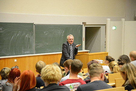 Rainer Wieland rief die Studierenden zu mehr Engagement in und für Europa auf: Weder eine geringe Wahlbeteiligung noch Desinteresse für Dinge, die nicht unmittelbar angingen, würden Europa voranbringen. Mitgestalten könne jeder, überall. Der sich in Gründung befindliche EUD Landesverband Sachsen böte beispielsweise eine gute Gelegenheit für das europäische Engagement vor Ort. Prof. Dr. Niedobitek, Inhaber der Jean-Monnet-Professur für Europäische Integration der TUC, der die Diskussionsveranstaltung moderierte, betonte in diesem Zusammenhang, dass es lohnenswert sei erlernte europarechtliche Theorie mit Erfahrungen aus der politischen Praxis zu vereinen.