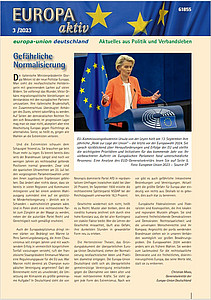 Alles neu macht der Juni: Unser Mitgliedsmagazin gibt es ab sofort als E-Paper. Entdecken Sie jetzt die neue Desktopversion mit der Lesefunktion. In der neuen Ausgabe blicken wir zurück auf den EUD/JEF-Bundesausschuss mit „Special Guest“ Bettina Schausten, auf den Neustart unseres renommierten Berliner Formats „Europäischer Abend“ und auf zahlreiche Aktivitäten der Kreis- und Landesverbände in den Europawochen.