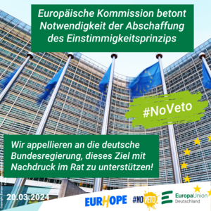 Heute ist ein hoffnungsvoller Tag für Europa: Die Europäische Kommission hat mit Nachdruck auf die Notwendigkeit hingewiesen, die Einstimmigkeitsregel im Rat der EU abzuschaffen, um auch künftig die Einigkeit und Handlungsfähigkeit der EU zu gewährleisten. Diese besteht insbesondere mit Blick auf eine künftige erweiterte EU mit 30+ Mitgliedstaaten.